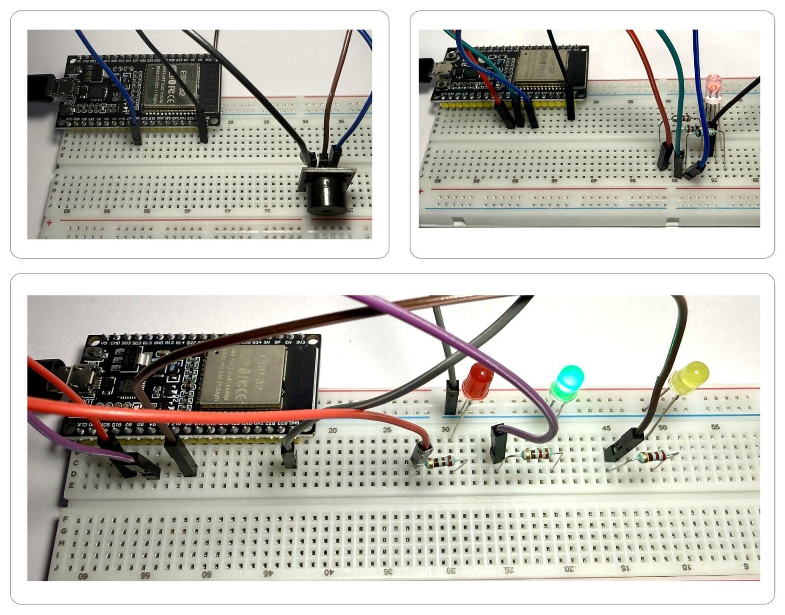 Connect ESP32 and components on the breadboard.